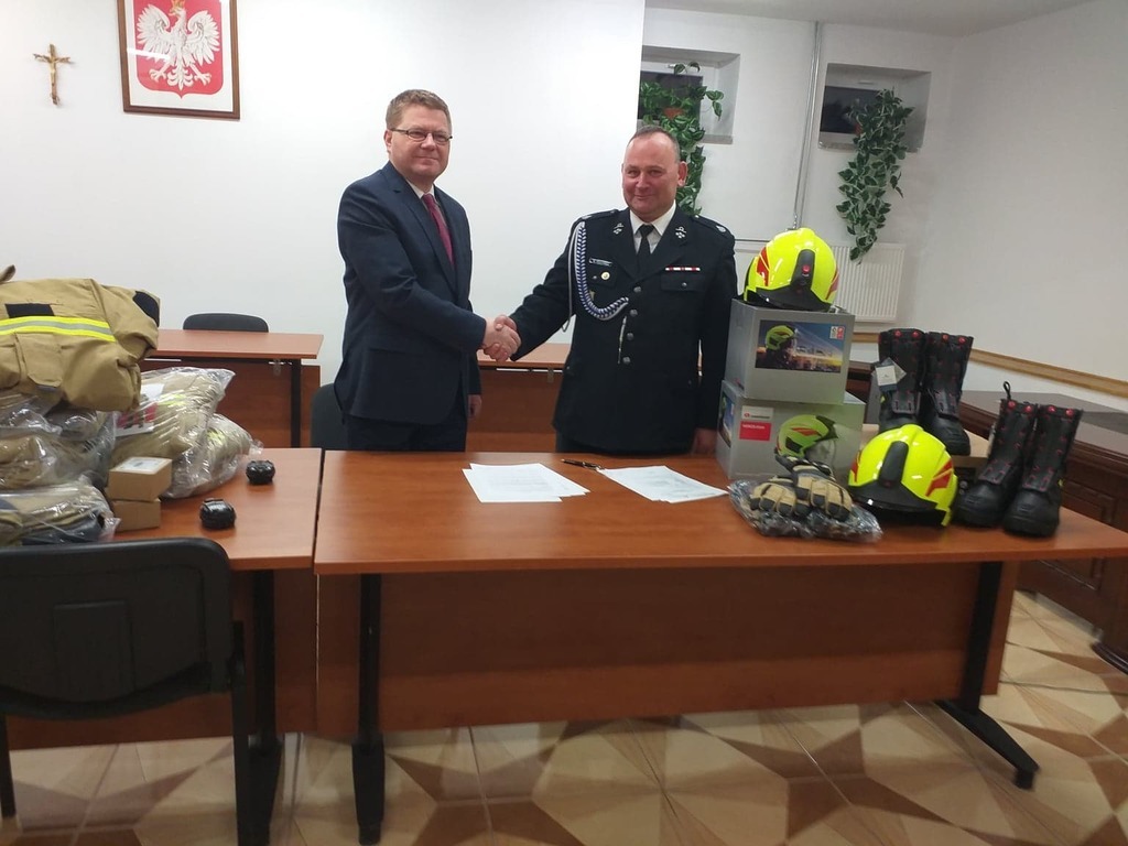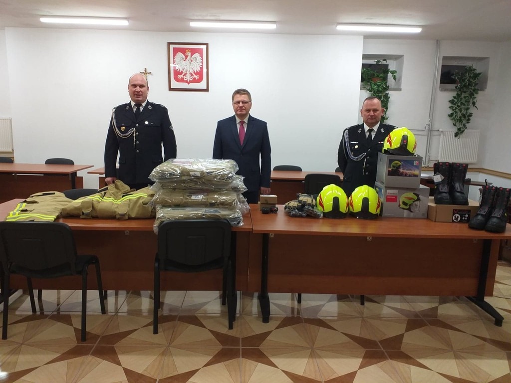 Dnia 29 grudnia 2020r. w Urzędzie Gminy w Świętajnie miało miejsce przekazanie wyposażenia oraz sprzętu ratownictwa dla Ochotniczej Straży Pożarnej w Świętajnie. Wyposażenie zostało zakupione przez Gminę w ramach realizacji zadań z Funduszu Pomocy Pokrzywdzonym oraz Pomocy Postpenitencjarnej przy współfinansowaniu ze środków Funduszu Sprawiedliwości. W ramach projektu zakupiono 8 kompletów odzieży specjalnej, 8 par butów i rękawic, 8 hełmów oraz 2 sygnalizatory bezruchu. Łączna wartość sprzętu wynosi 41 571,52zł, z czego 415,71zł to wkład własny Gminy, a 41 155,81zł-dofinansowanie Funduszu Sprawiedliwości. W przekazaniu wyposażenia wziął udział Wójt Gminy Świętajno oraz przedstawiciele Ochotniczej Straży Pożarnej w Świętajnie – Prezes OSP Michał Anulewicz, Naczelnik OSP Przemysław Predko oraz Komendant Gminny OSP Wiesław Świtaj.